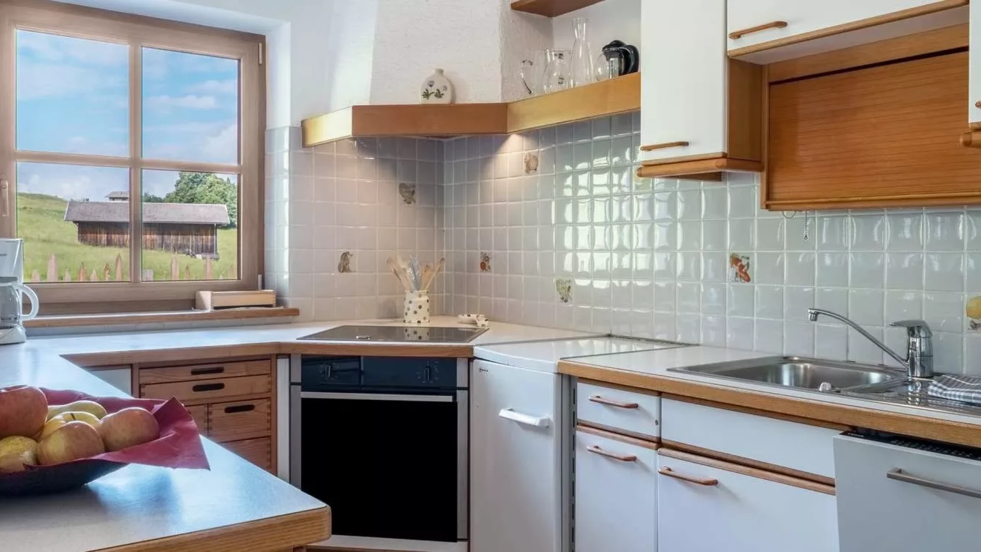 Voll ausgestattete Küche: Elektroherd, Backofen, Spülmaschine, 2 Kühlschränke mit Gefrierfach, Filterkaffeemaschine, Wasserkocher