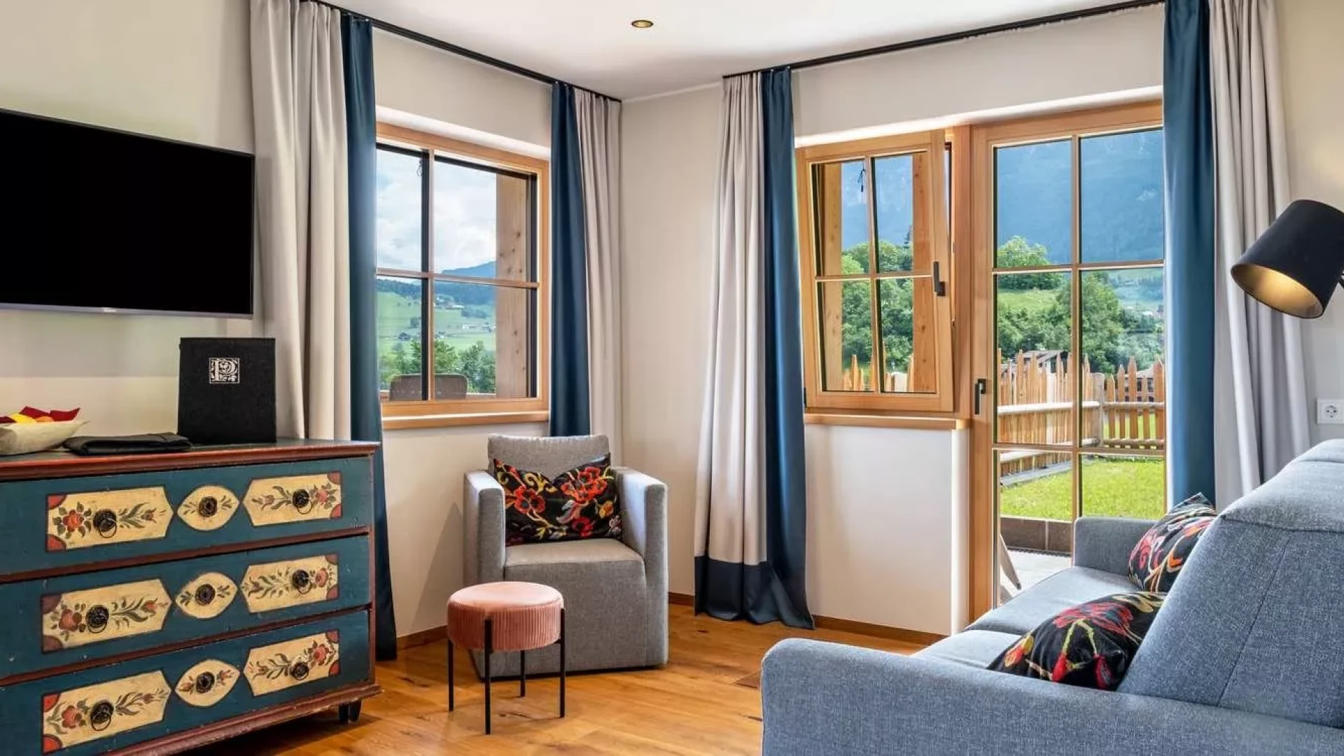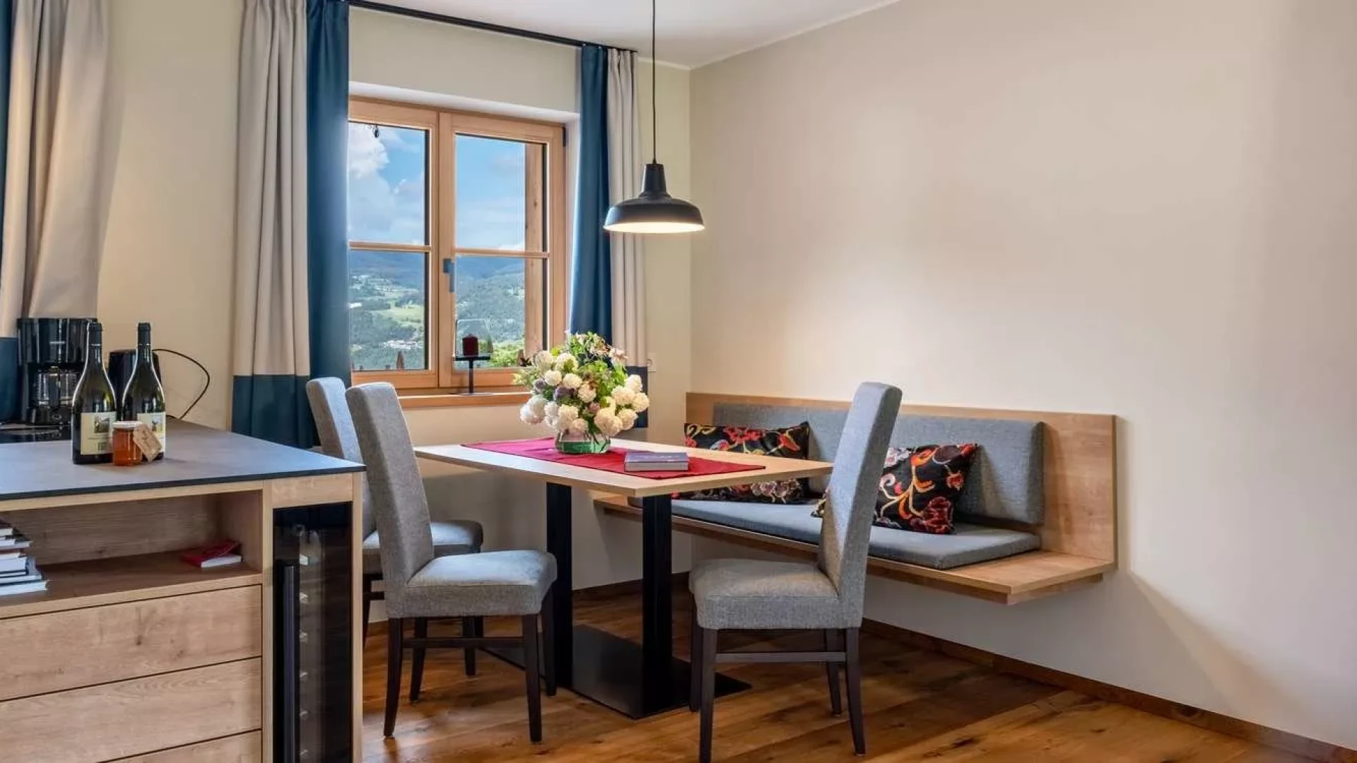 Pietra, legno, vetro: sono questi i materiali naturali che si sentono subito familiari. Quando si varca la porta dell'appartamento “Dahoam”, si è arrivati. Il legno profuma, la pietra è piacevole, due terrazze e un ampio balcone fanno sembrare fluidi i confini tra interno ed esterno. Due camere da letto offrono spazio per quattro persone, il bagno è dotato di doccia a pioggia e luce blu e la sala panoramica con cucina-soggiorno è funzionale ed elegantemente arredata. Tutto ha un'aria di terra, solo il balcone con la sauna per due persone sembra fluttuare sopra la Valle Isarco. Una casa perfetta per una vacanza magica!